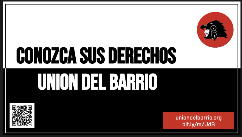 Please note that this type of community work is risky, and Unión del Barrio does not support nor promote any type of illegal activities. Everything we do is protected under the following fundamental constitutional rights: